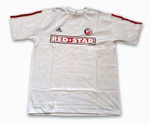White Adidas T-shirt, with Red Star symbols and signs.